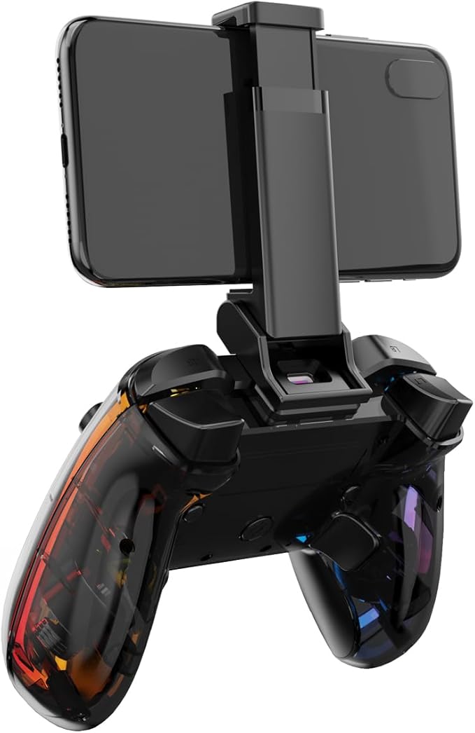 وحدة التحكم Havit G158BT Pro مصممة لتقديم تجربة لعب مريحة وفعالة على الهواتف المحمولة، مع تصميم شفاف أنيق يبرز مكونات الجهاز.