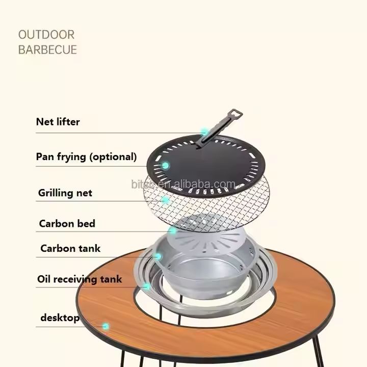 طاولة متنقلة للرحلات والباربكيو – دائرية وقابلة للطي